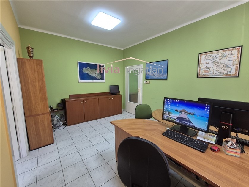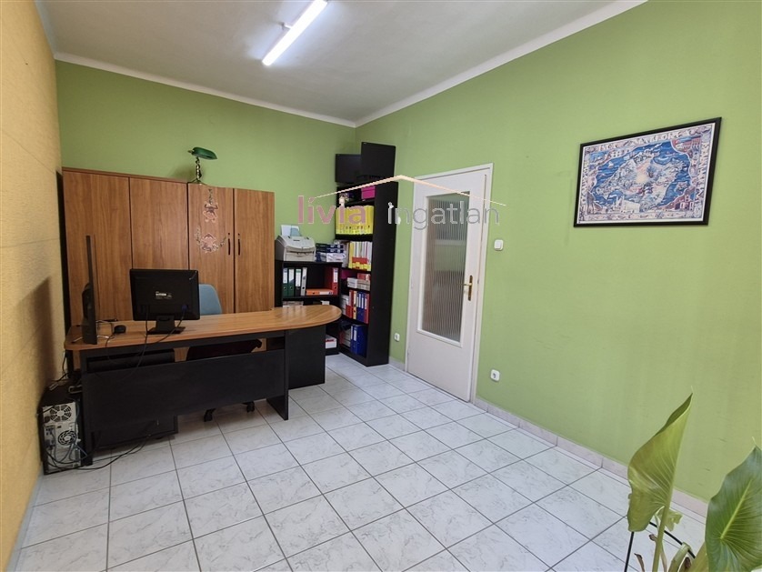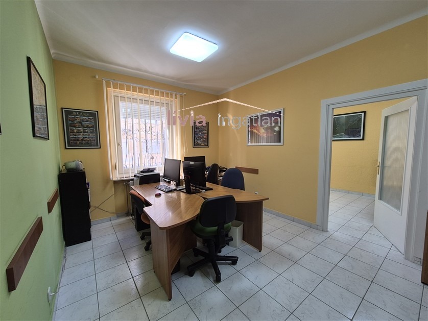 A földszinten fogadótérből, kis konyhából, mosdóból és 2 szobából álló irodát alakítottak ki. Az emeleti lakás az erkélyes nappali és a hálószoba mellett konyhával, étkezővel és fürdőszobával rendelkezik.